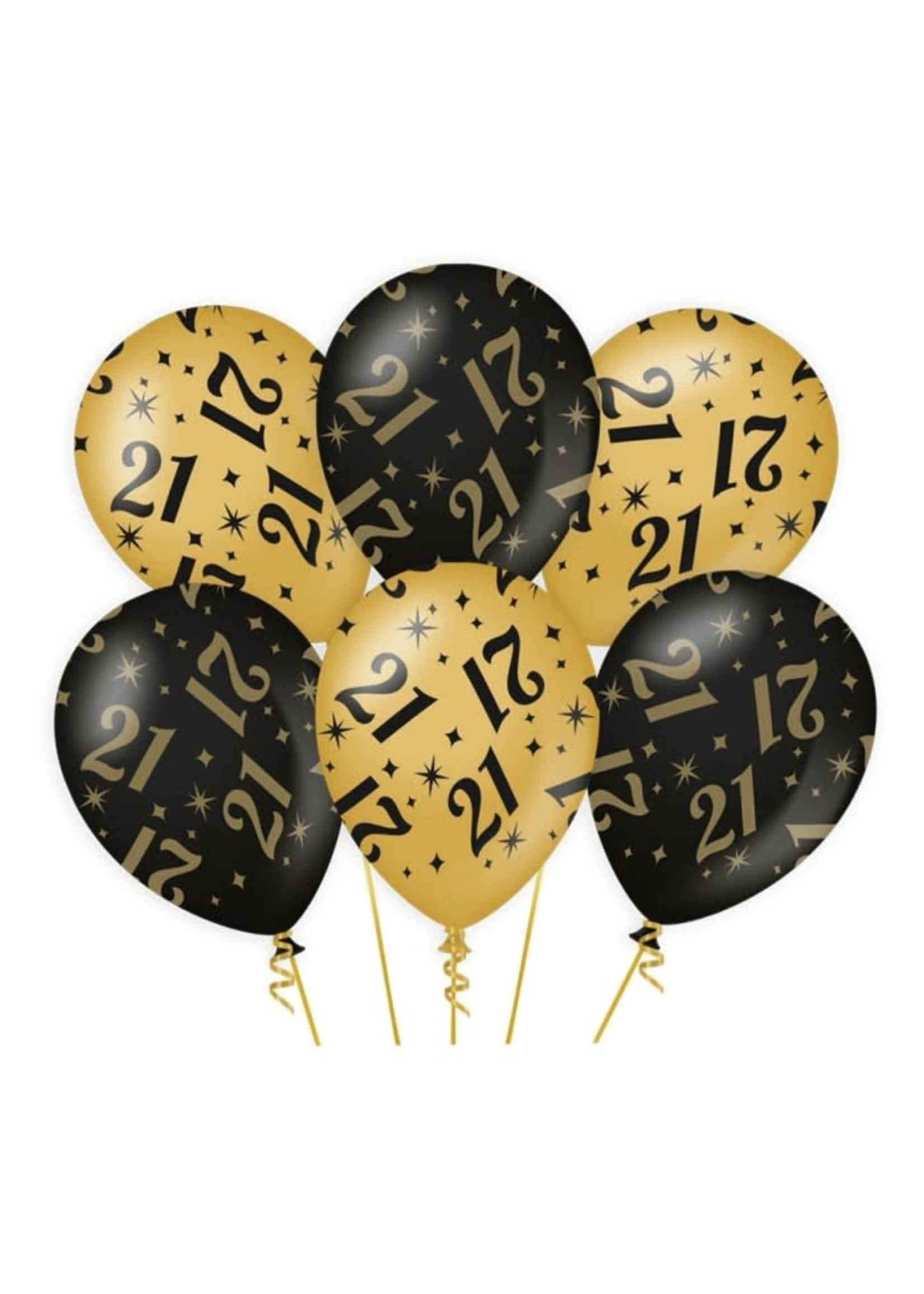 Mooie latex ballonnen met 21 er op deze hebben een luxe uitstraling door het unieke kleurgebruik van zwart met goud.