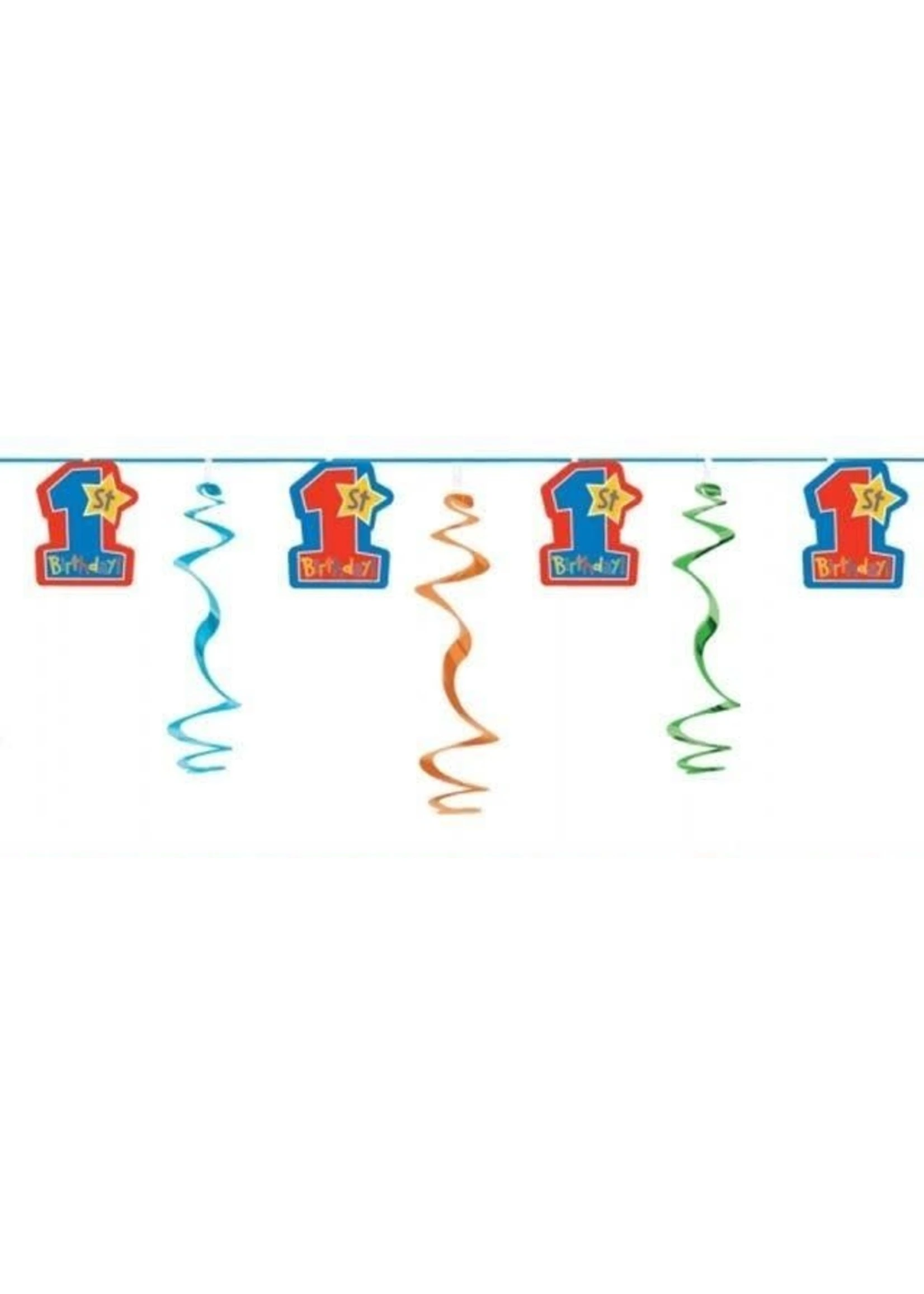 Swirl slinger met “happy 1 st birthday”erop.