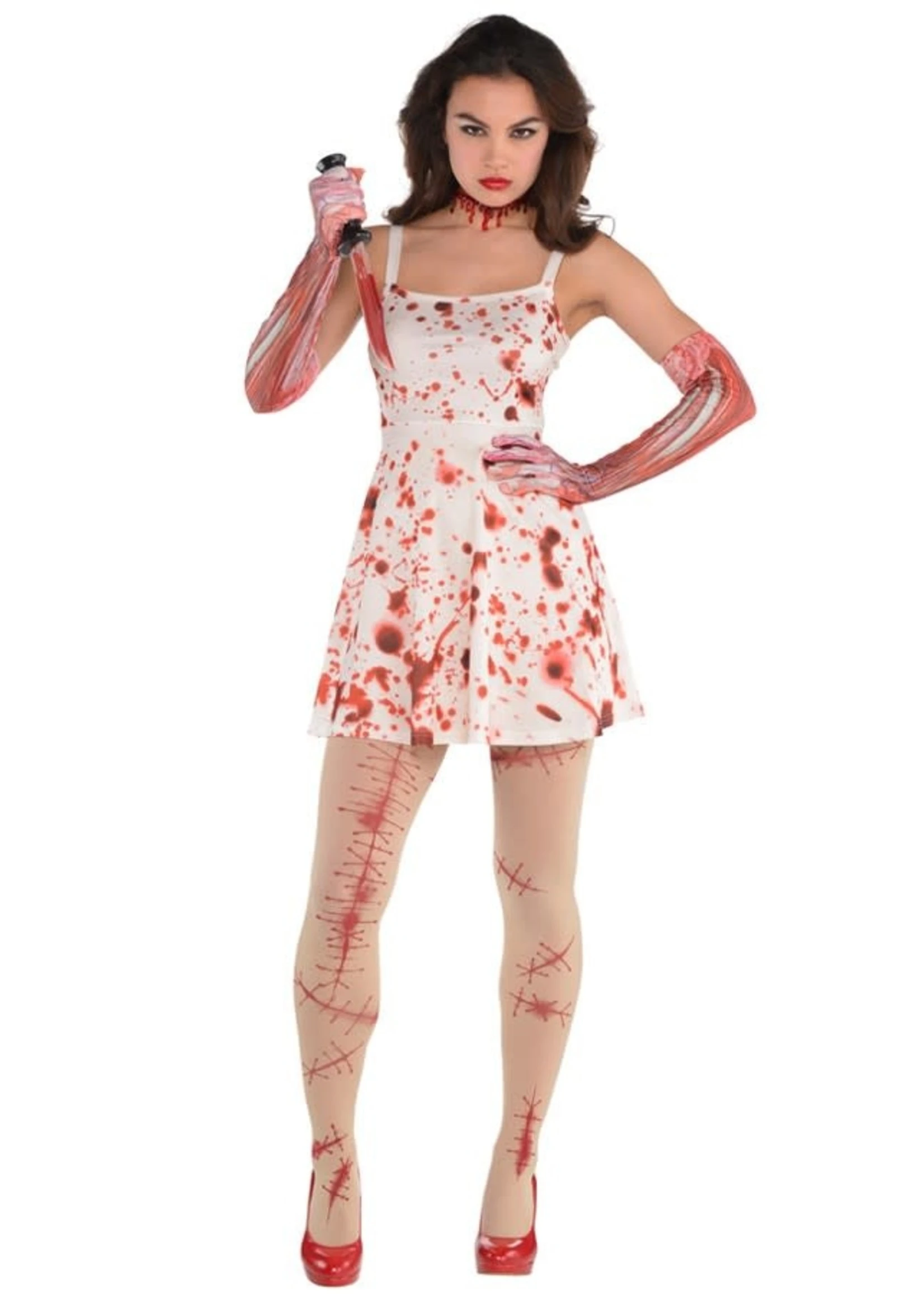 Steel de show met deze leuk jurk met bloed vlekken, kijk op onze site voor bijpassende accessoires. Leuk voor een thema feest, en Halloween.