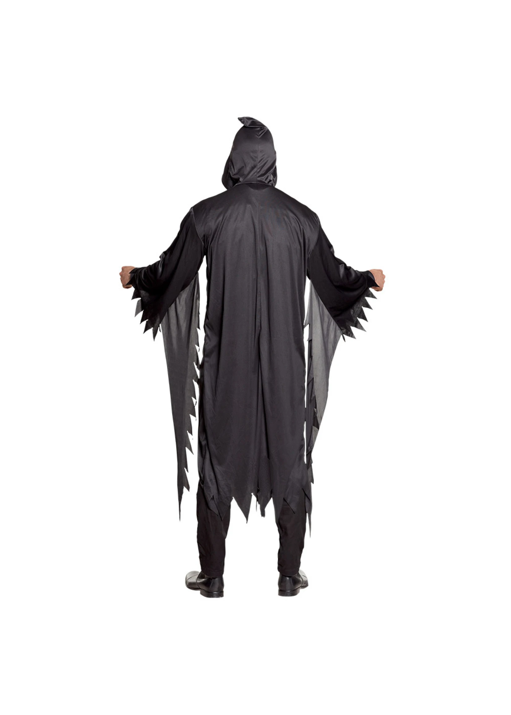 Maar je kunt dit zwarte gewaad met kap ook gebruiken als basis en een compleet andere look creëren met schmink en accessoires.