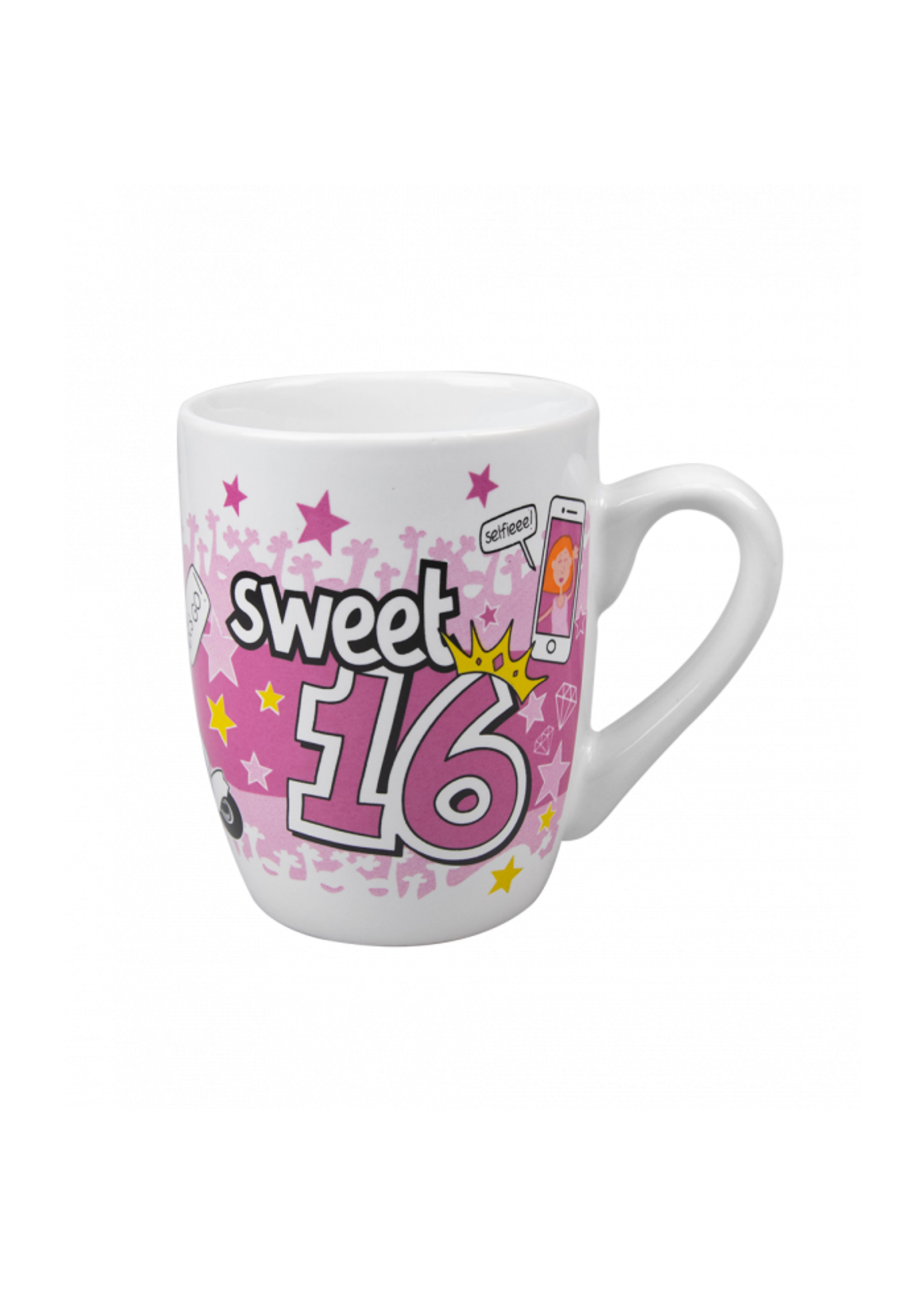Deze mok met grappige tekening en tekst Sweet 16 is gemaakt van keramiek en door de unieke ‘cartoon’ style is deze mok een echte eyecatcher.