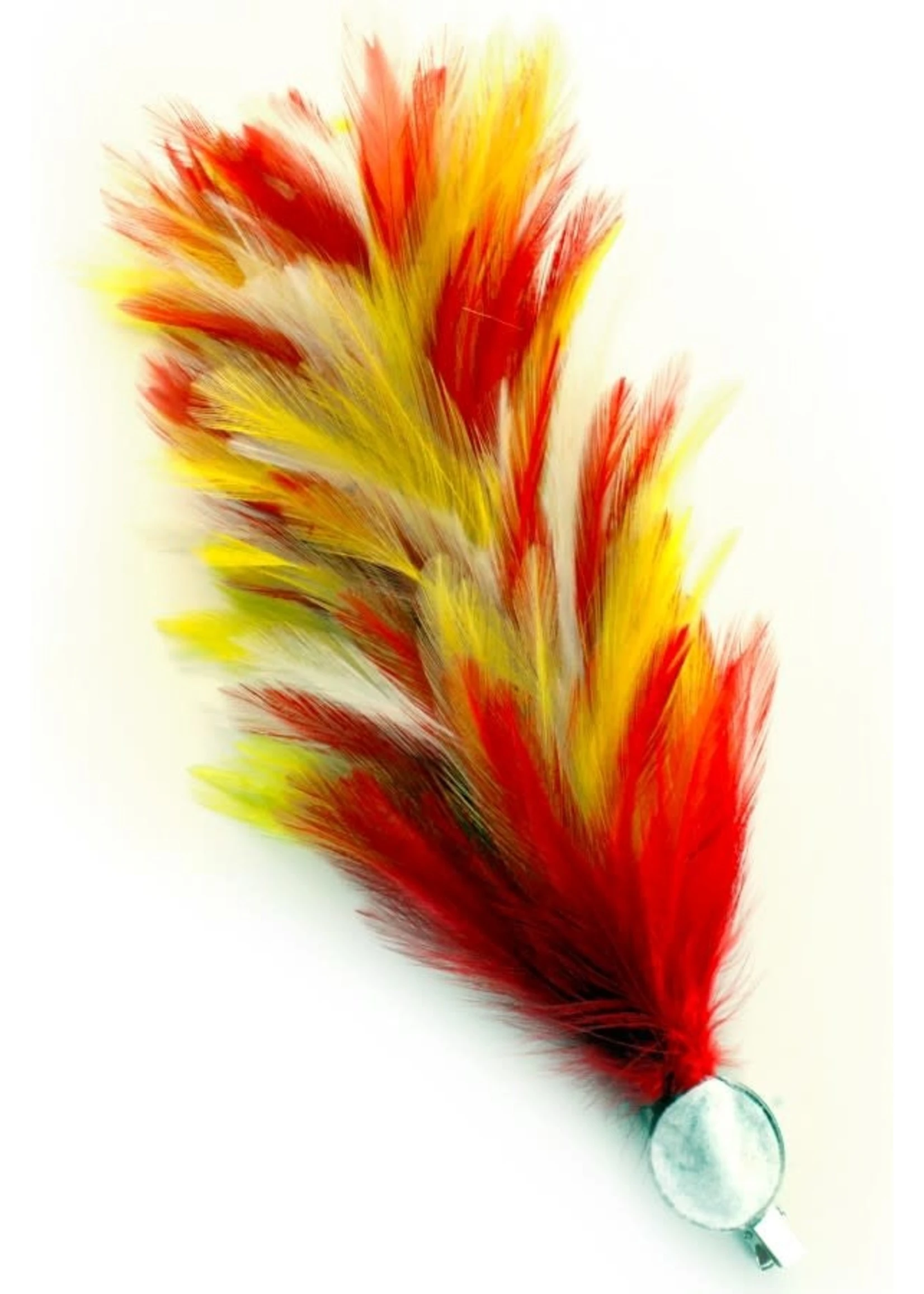 Verenpluim rood/wit/geel buigbaar met speld en clip.