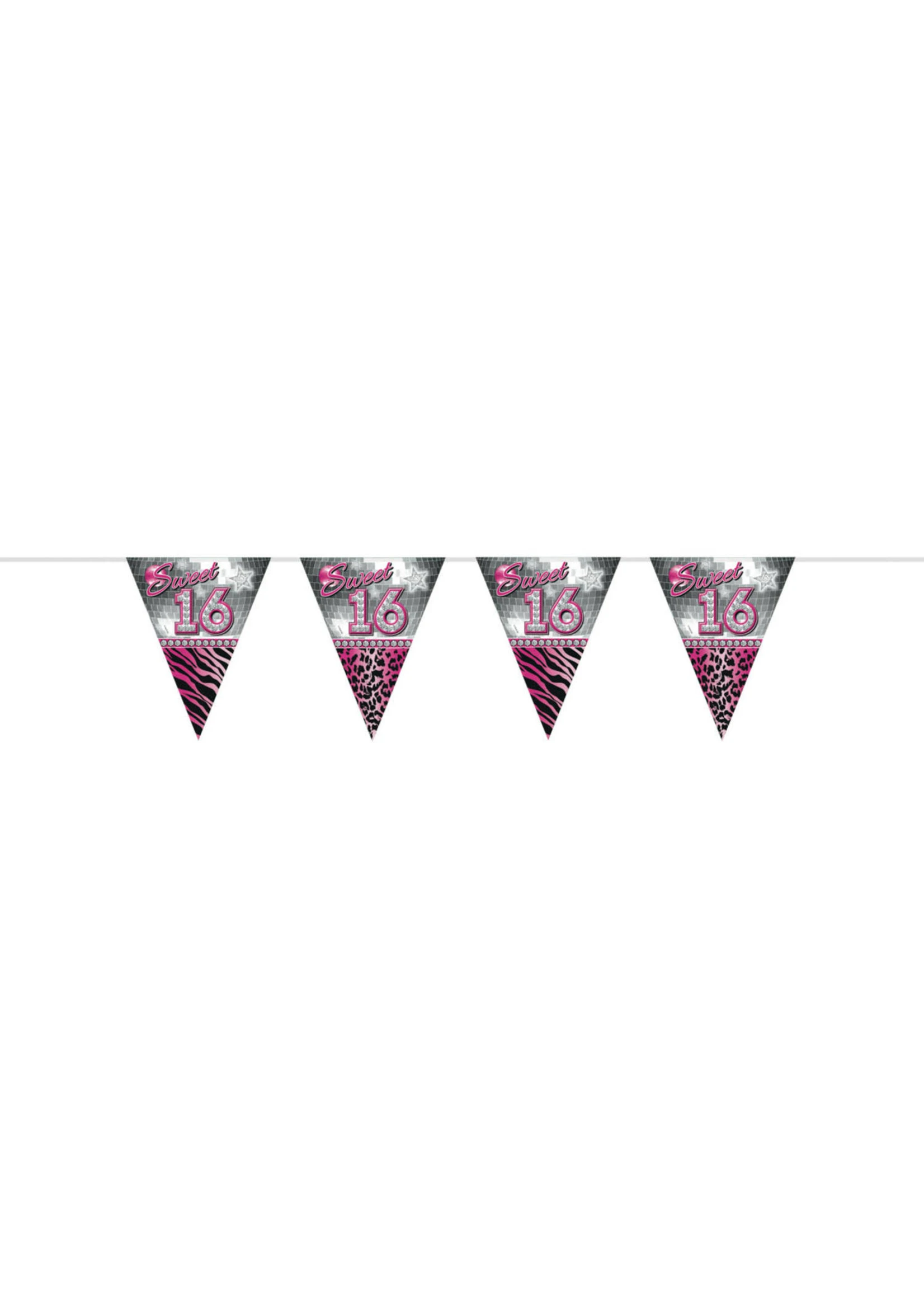 Leuke vlaggenlijn voor een sweet 16 party.